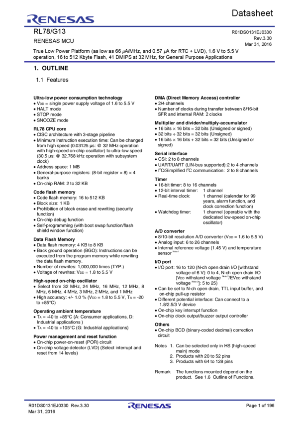 MCU 16-Bit 78K0R/Ix3 78K0R CISC 64KB Flash 3.3V/5V 64-Pin LFQFP