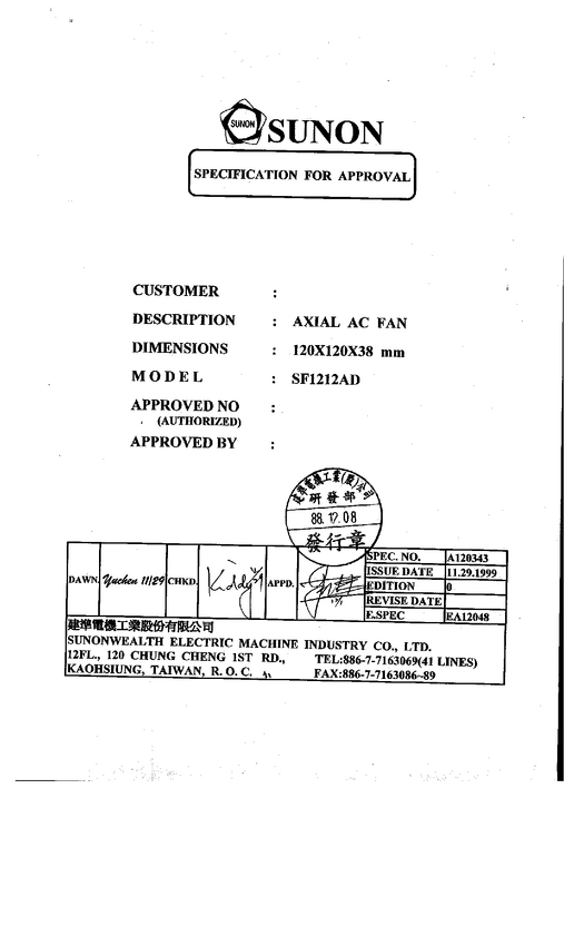 Wentylator 115/230V 120x38 GL 145m3/h 2700/3100 RPM +-10% łożysko kulkowe; wuprowadzenia kabelki 24 AWG; Prąd 0,27A / 0,24A moc 21,5 / 19 W 44 / 49 dB(A) Rozstaw śrub 104,8 x 104,8 mm