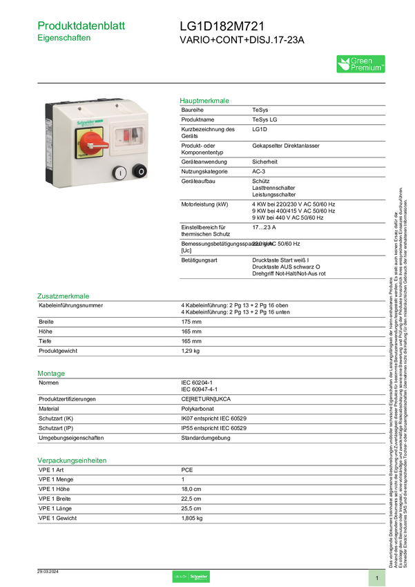 Schneider Electric LG1D182M721 LG1D182M721 Starter bezpośredni