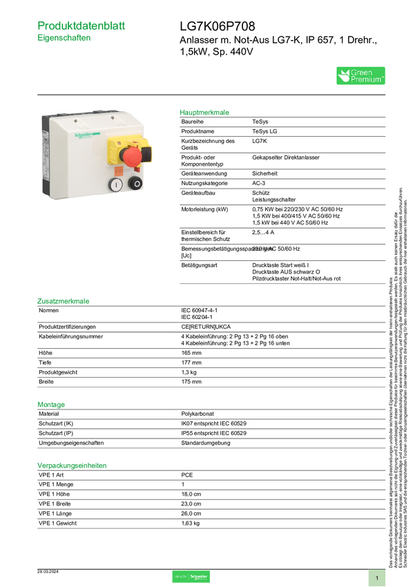 Schneider Electric LG7K06Q708 LG7K06Q708 Starter bezpośredni