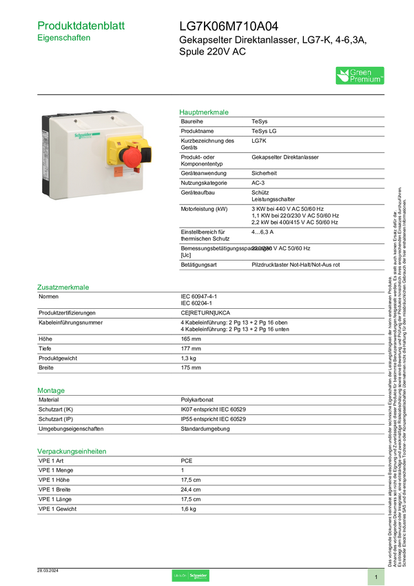 Schneider Electric LG7K06P710 LG7K06P710 Starter bezpośredni
