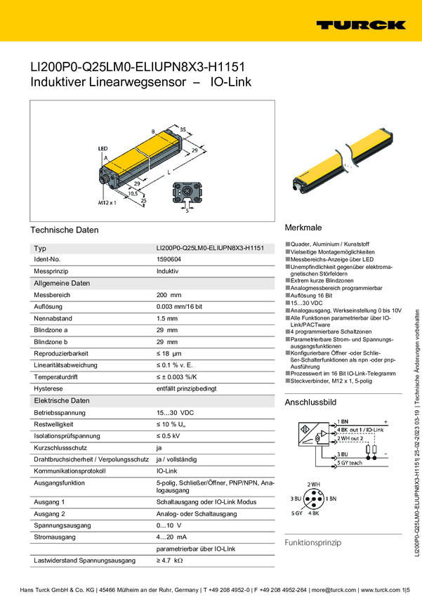 Turck Czujnik położenia liniowego LI200P0-Q25LM0-ELIU5X3-H1151