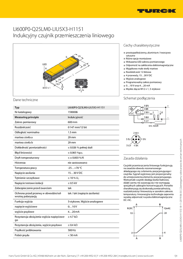 Turck Czujnik położenia liniowego LI600P0-Q25LM0-LIU5X3-H1151