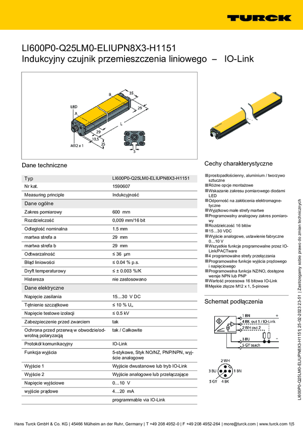 Turck Czujnik położenia liniowego LI600P0-Q25LM0-ELIU5X3-H1151