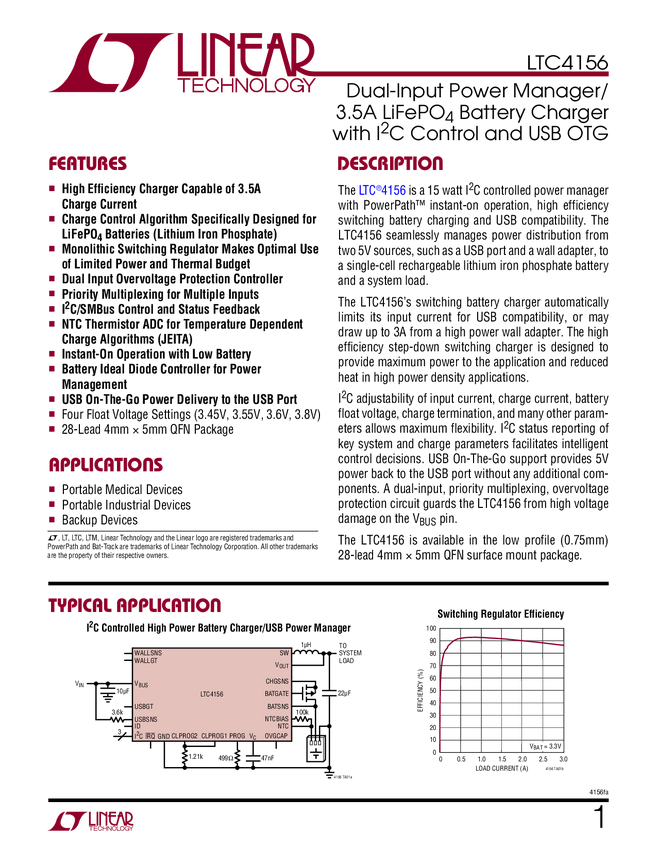 Dual-Input Power Manager/3.5A LiFePO Battery Charger with IC Control and USB OTG