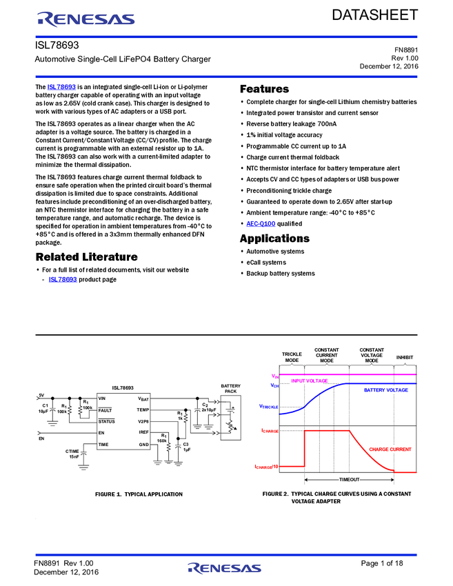 USB Compatible Switching Power Manager/LiFePO Charger with Overvoltage Protection
