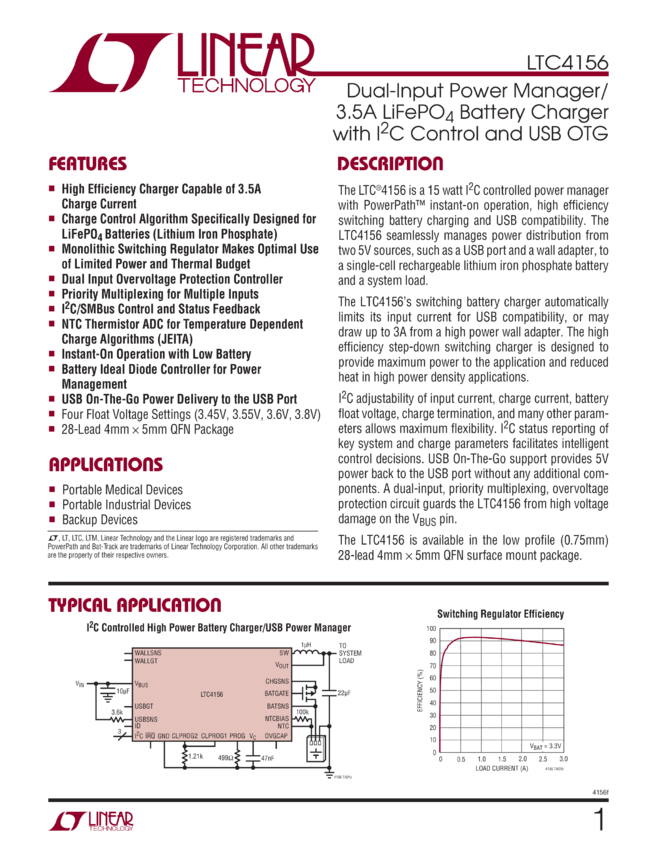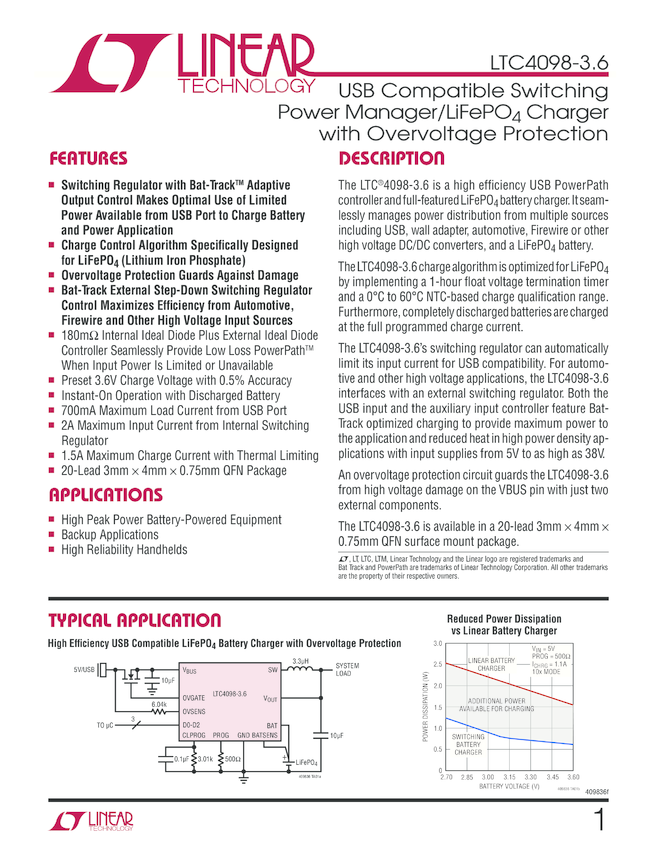 USB Compatible Switching Power Manager/LiFePO4 Charger with Overvoltage Protection