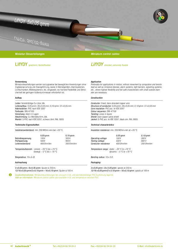 Przewód sterowniczy Kabeltronik LifYDY 350200800-1, 2 x 0.08 mm², Produkty w metrach bieżących, czarny