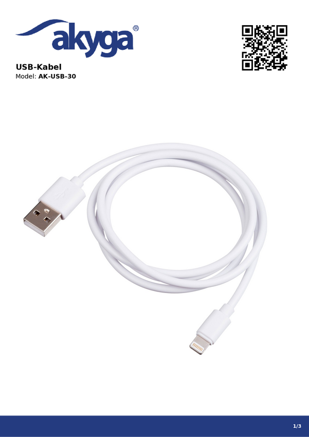 Akyga Kabel USB Złącze męskie USB-A, Złącze męskie Lightning 1.00 m AK-USB-30