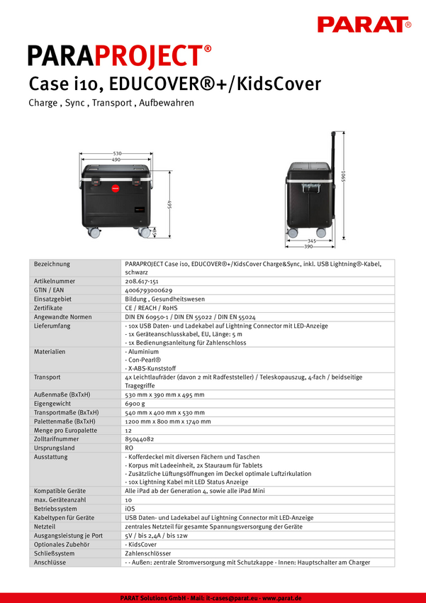 System zarządzania ładowaniem Parat PARAPROJECT® Case i10, EDUCOVER®+/KidsCover do kabla Apple Lightning