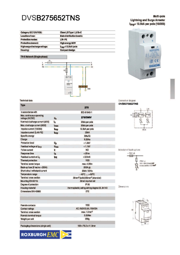 Multi Pole Lightning and Surge Arrestor 275V/350V 25kA DIN Rail