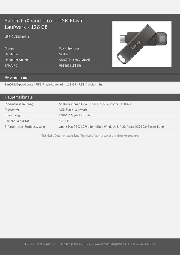 SanDisk iXpand® Luxe Pendrive USB 128 GB czarny SDIX70N-128G-GN6NE Apple Lightning, USB-C® (USB 3.1 Gen 1)