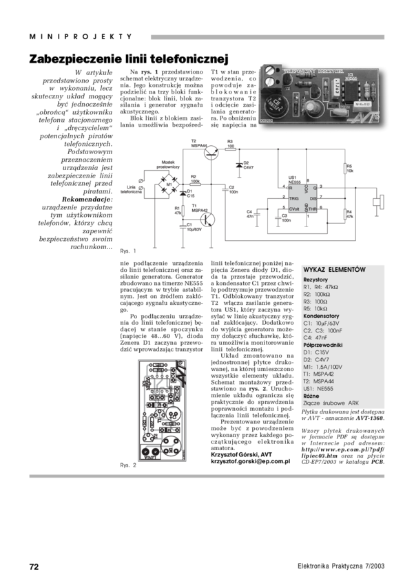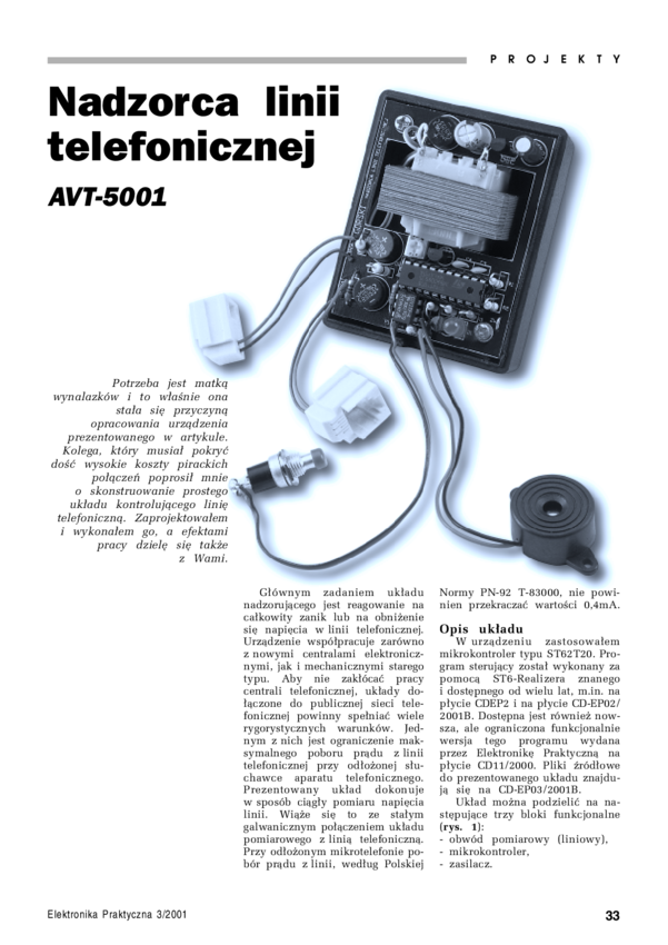 AVT5001 A+ Nadzorca linii telefonicznej - płytka drukowana i zaprogramowany układ