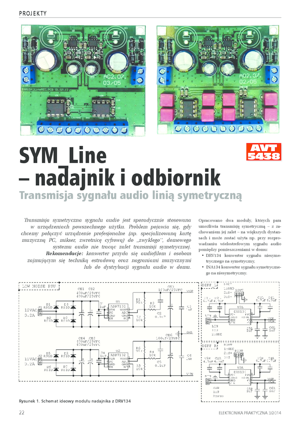 AVT5438 A Transmisja sygnału audio linią symetryczną - płytka drukowana