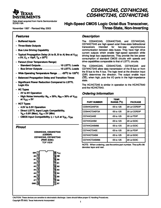 Układ scalony CD74HCT245M, 8 x 3-stan. nad/odb. linii, SOL20, TI