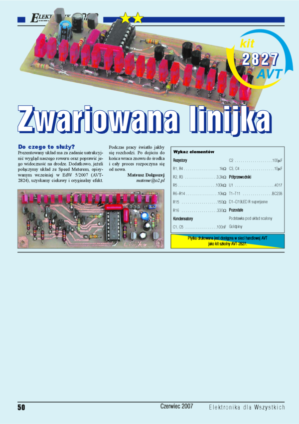 AVT2827 A Zwariowana linijka - płytka drukowana