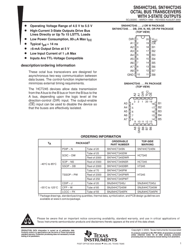 Układ scalony SN74HCT245D, 8 x 3-stan. nad/odb. linii, SOL20, TI