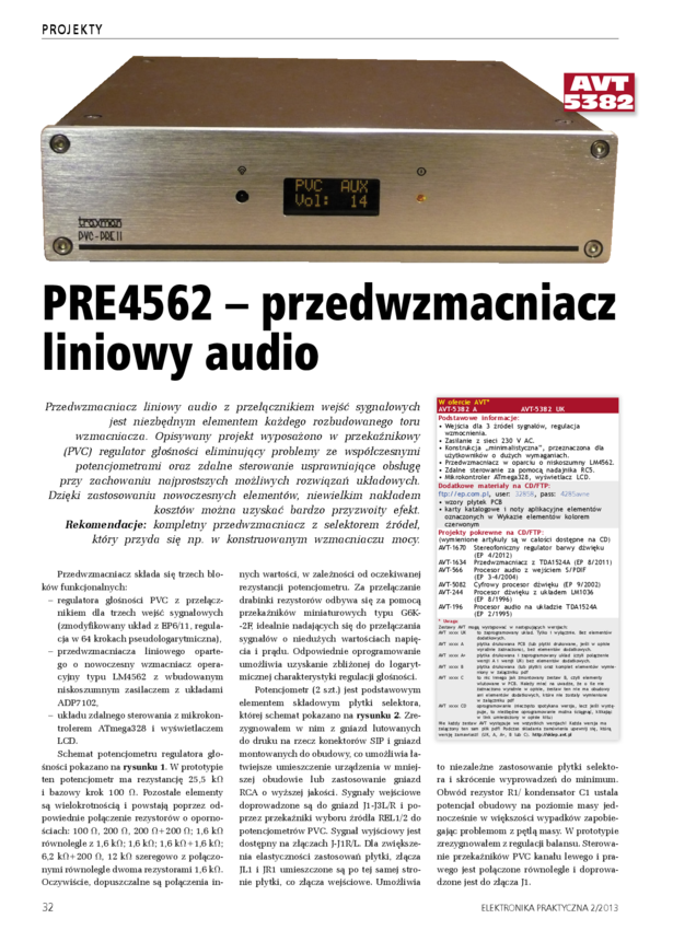 AVT5382 A PRE4562 - przedwzmacniacz liniowy audio - płytka drukowana