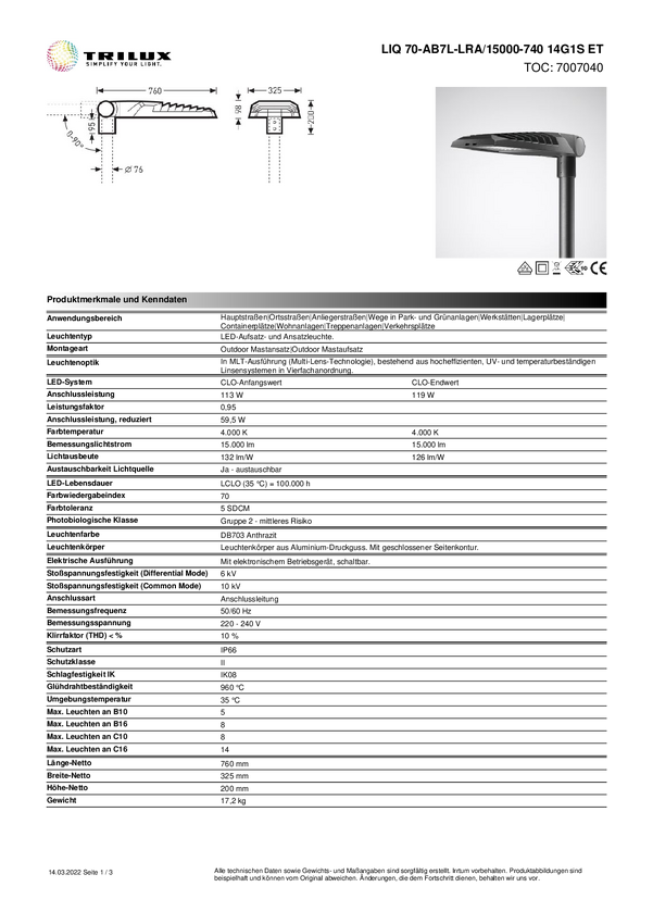 Trilux LIQ 70-AB7L #7007040 7007040 Lampa LED górna/boczna LED brak 119 W antracytowy