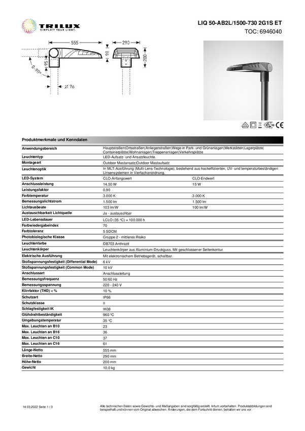 Trilux LIQ50SB3LLR #6938940 6938940 Lampa LED górna/boczna LED brak 10.5 W antracytowy