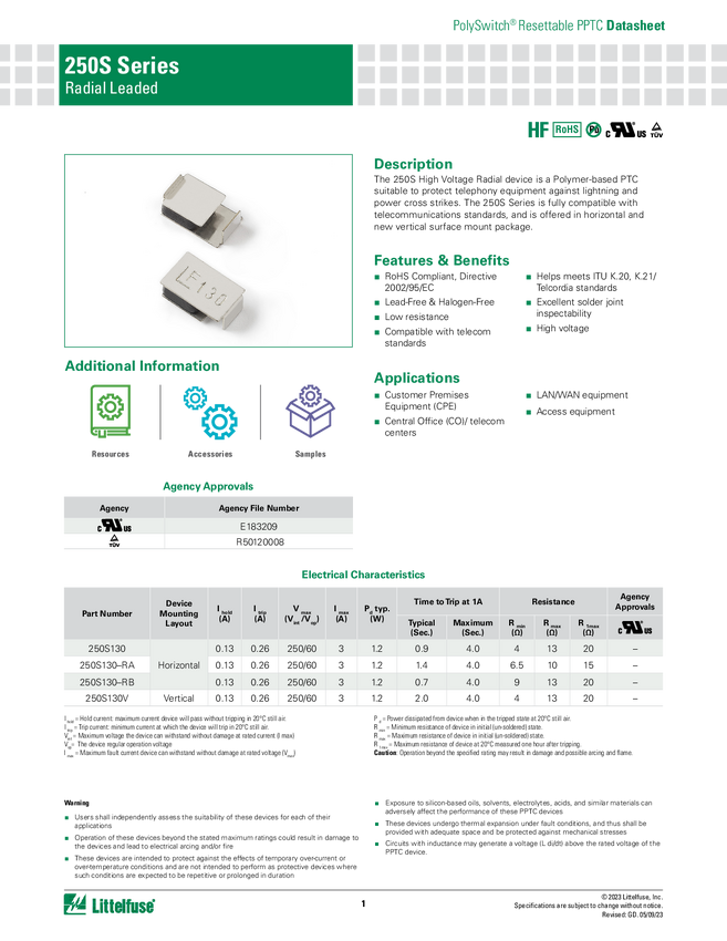Bezpiecznik Multifuse Littelfuse 250S130DR 250S130DR, 1 szt.