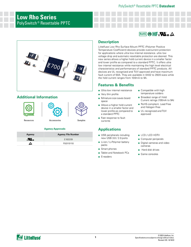 Bezpiecznik Multifuse Littelfuse RF5023-000 RF5023-000, 1 szt.