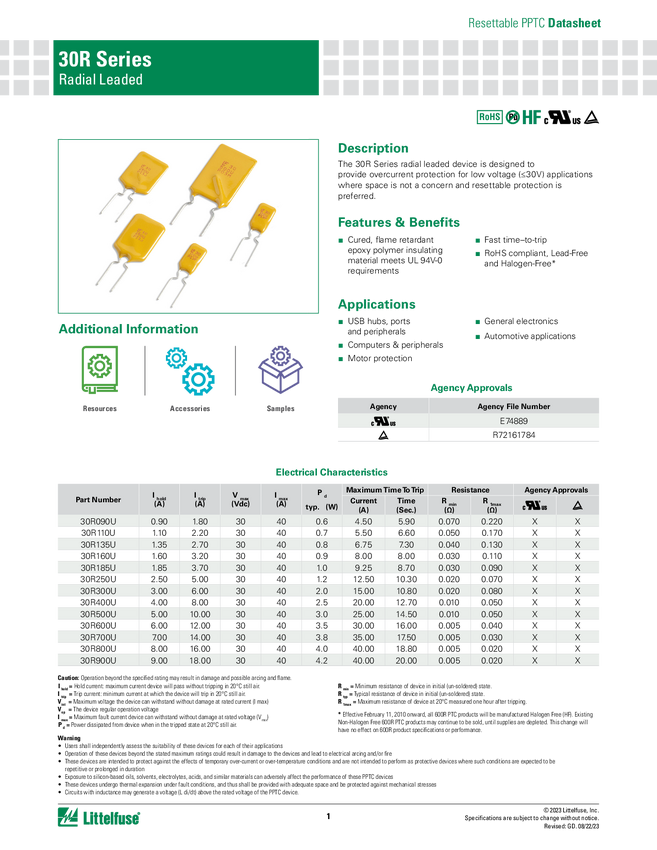Bezpiecznik Multifuse Littelfuse 30R110UPR 30R110UPR, 1 szt.