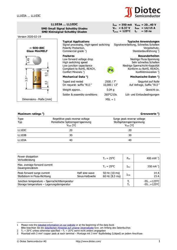 Dioda Schottky'ego Diotec LL103BR13 N/A N/A N/A