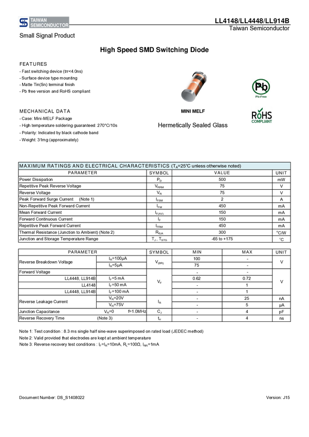 Dioda ESD Taiwan Semiconductor LL4448 L0G N/A N/A