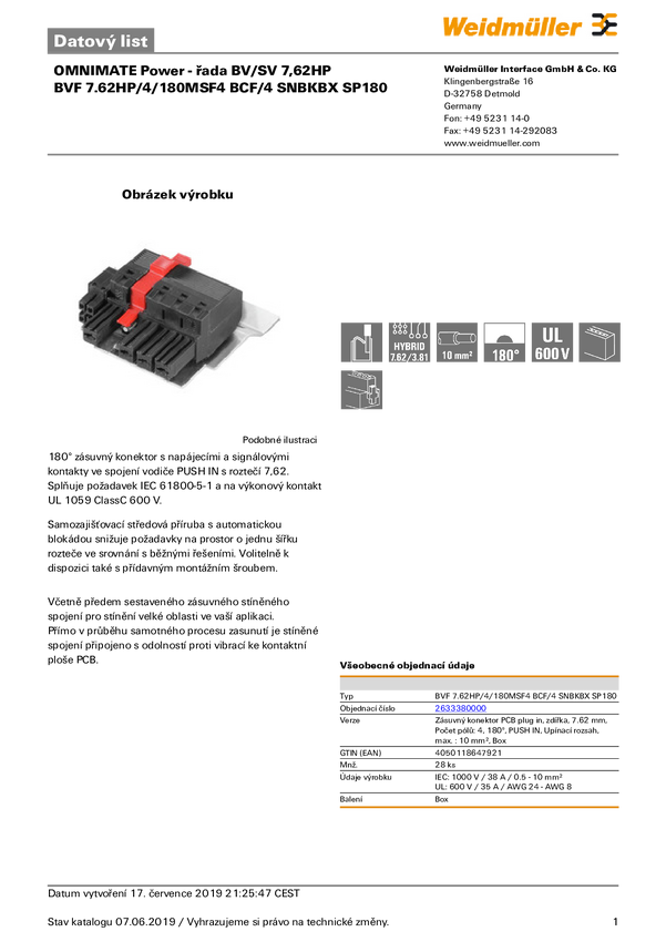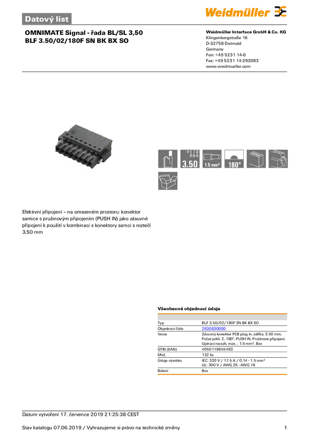 Weidmüller 2630830000 Złącze męskie PCB Łączna ilość styków 2 Ilość rzędów 1 528 szt.