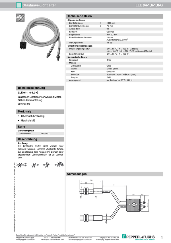 Pepperl+Fuchs 415614 Przewód światłowodowy LLE 04-1,6-1,0-G 1 szt.