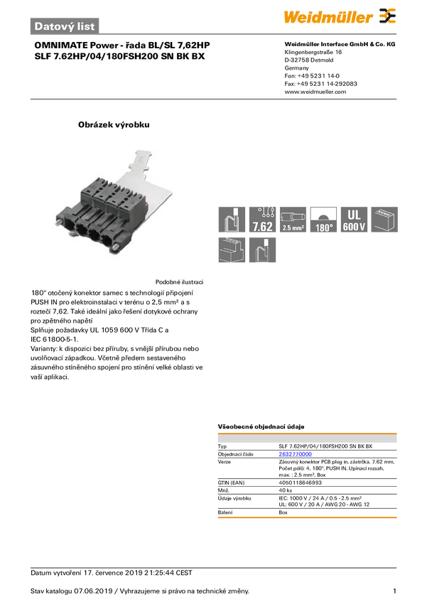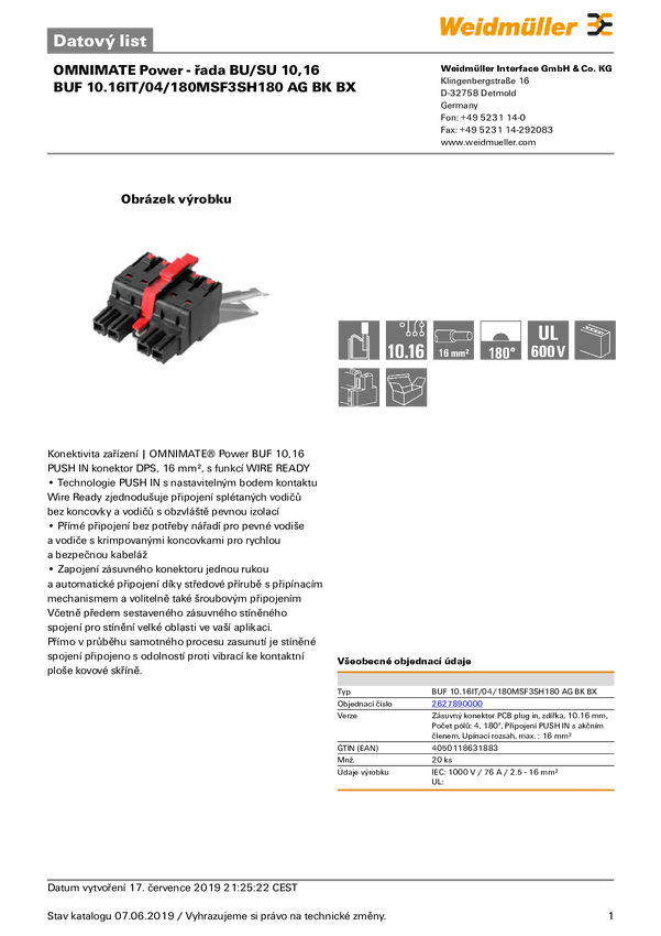 Weidmüller 2627940000 Złącze męskie PCB Łączna ilość styków 4 20 szt.
