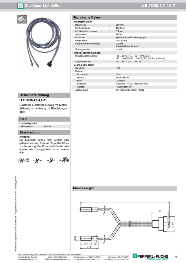 Pepperl+Fuchs 415628 Przewód światłowodowy LLE 18/30-2,3-1,0-Z1 1 szt.