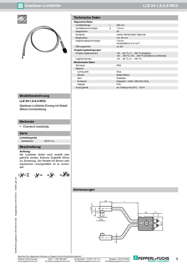Pepperl+Fuchs 415878 Przewód światłowodowy LLE 04-1,6-0,4-WC3 1 szt.