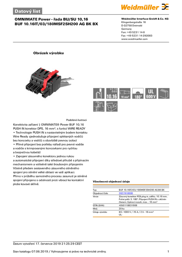 Weidmüller Obudowa złącza pin żeńskiego na kabel 2627900000 20 szt.