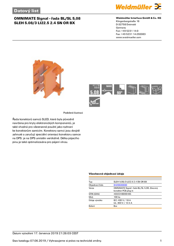 Weidmüller Obudowa złącza pin męskiego na PCB 8426630000 100 szt.