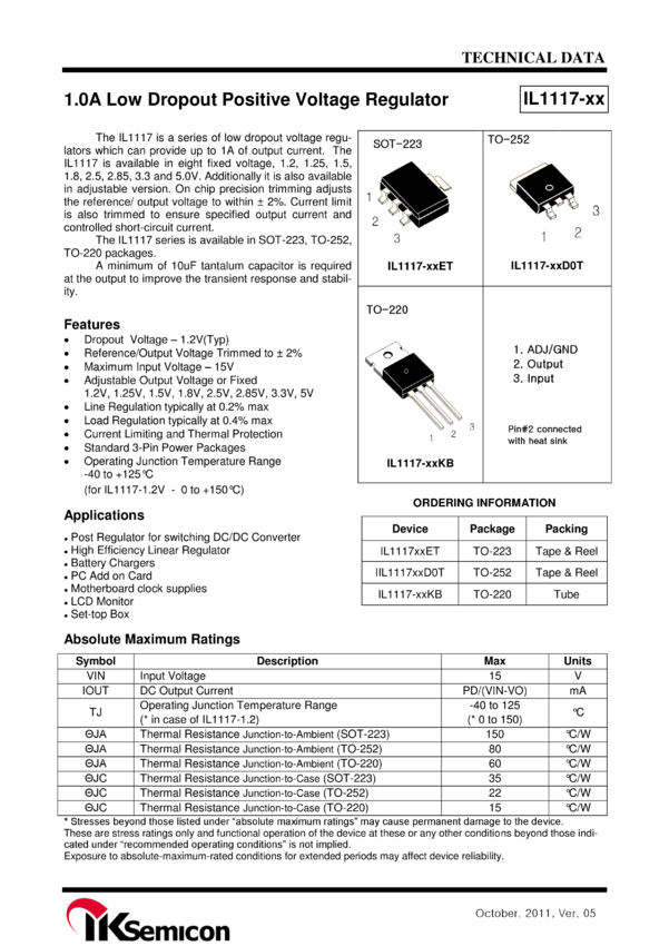 Stabilizator napięcia LDO, +5V, 1A, TO252, ROHS