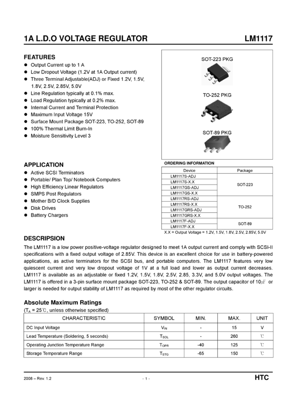 Stabilizator napięcia LDO, +3.3V, 1A, TO252, ROHS