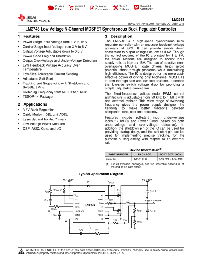DC DC Cntrlr Single-OUT Sync Buck 2.2V to 16V Input 14-Pin TSSOP T/R