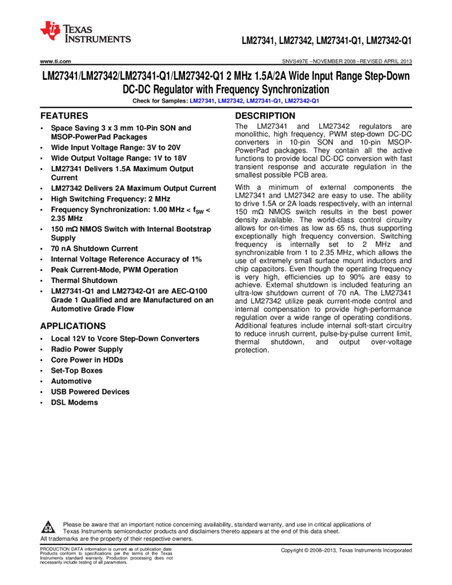 LM27341SDX/NOPB