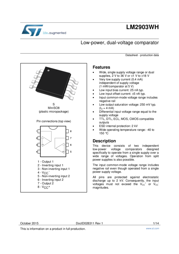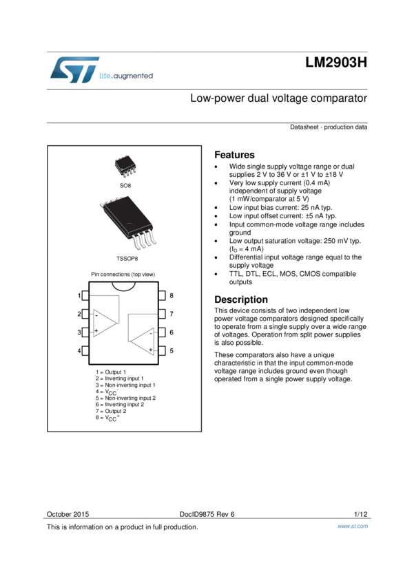 2 x komparator o niskim poborze mocy, 2÷36V, DIL8
