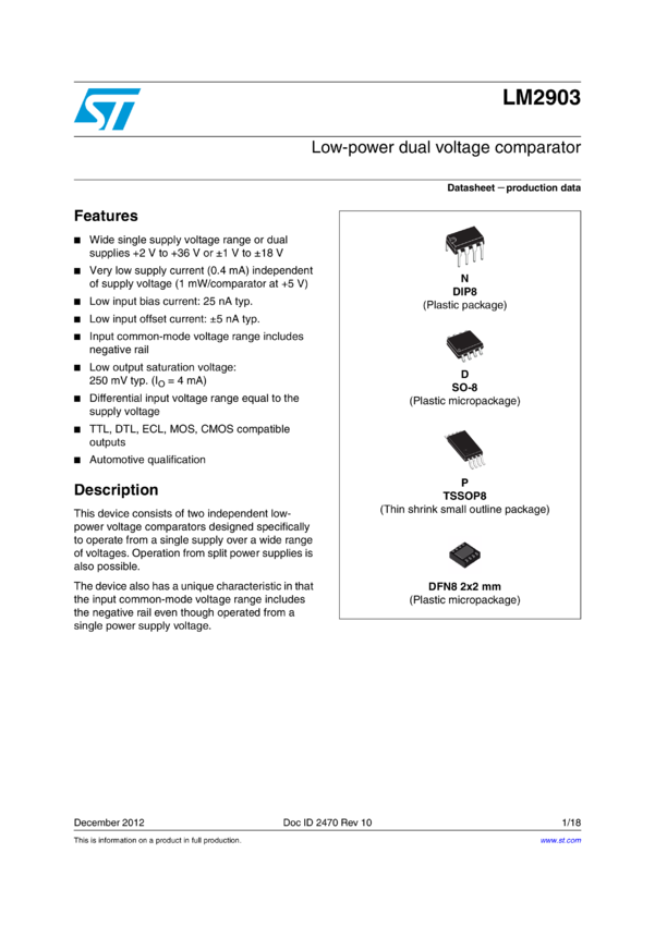 Comparator Dual ±18V/36V 8-Pin SO N T/R