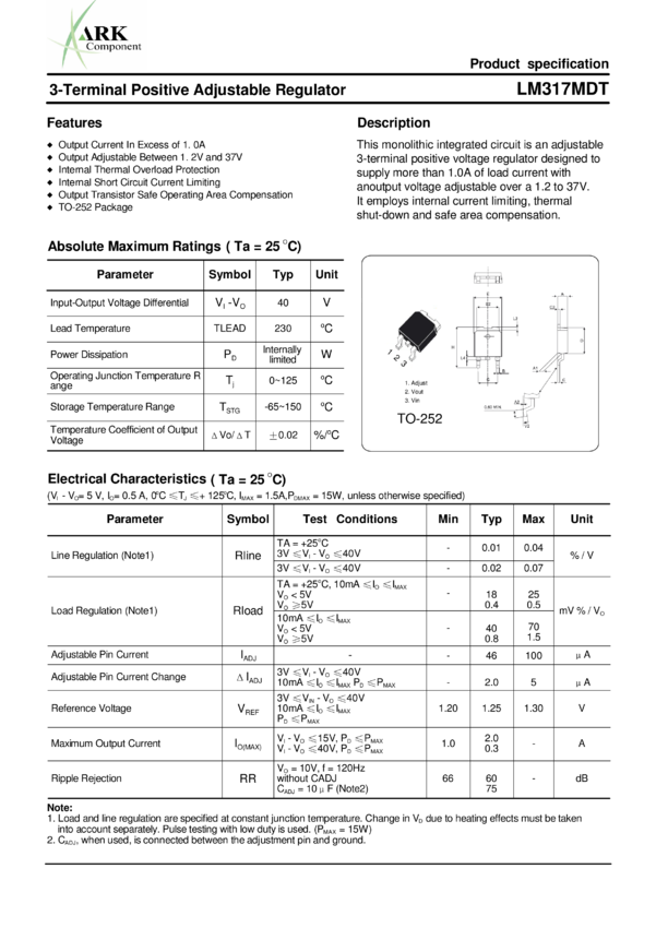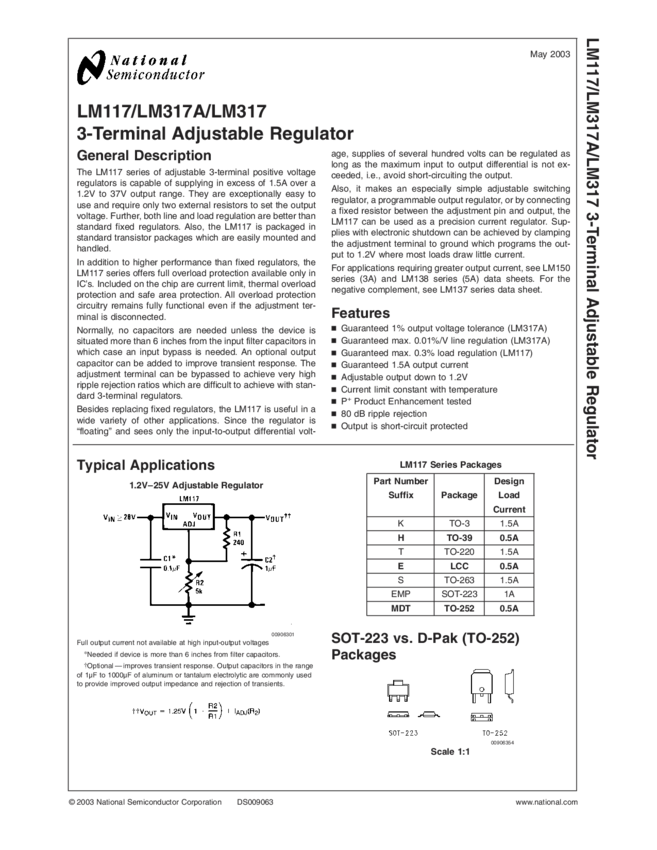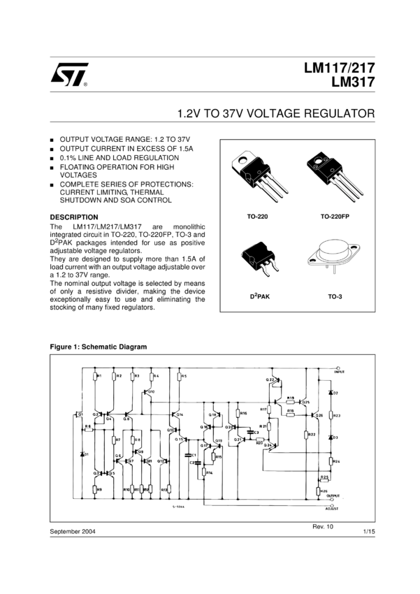 3-Terminal 1.5 A Positive Adjustable Voltage Regulator