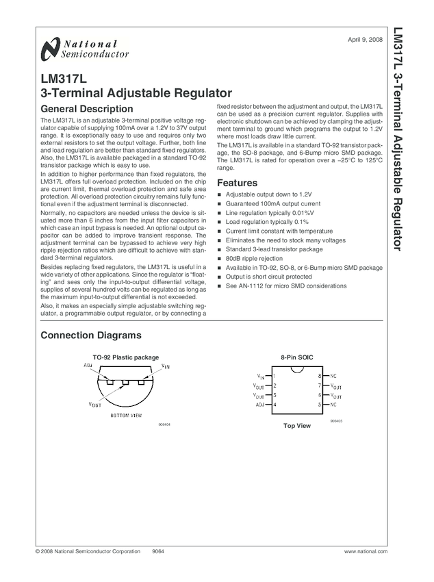 3-Terminal 0.1 A Positive Adjustable Regulator