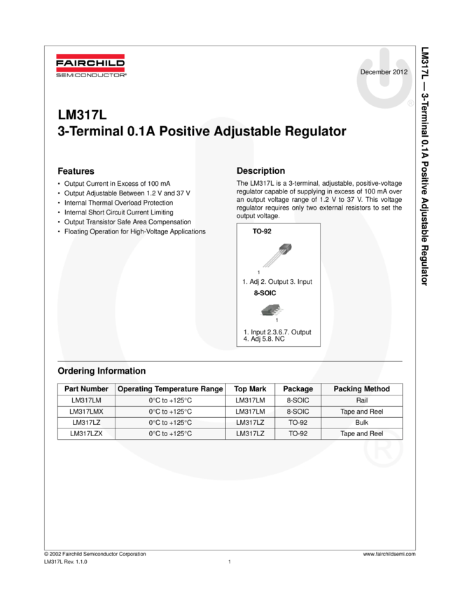 Standard Regulator Pos 1.2V to 37V 0.2A 3-Pin TO-92 T/R