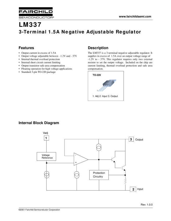 Regulowany stabilizator napięcia 1.5A, -1.2÷-37V, TO220