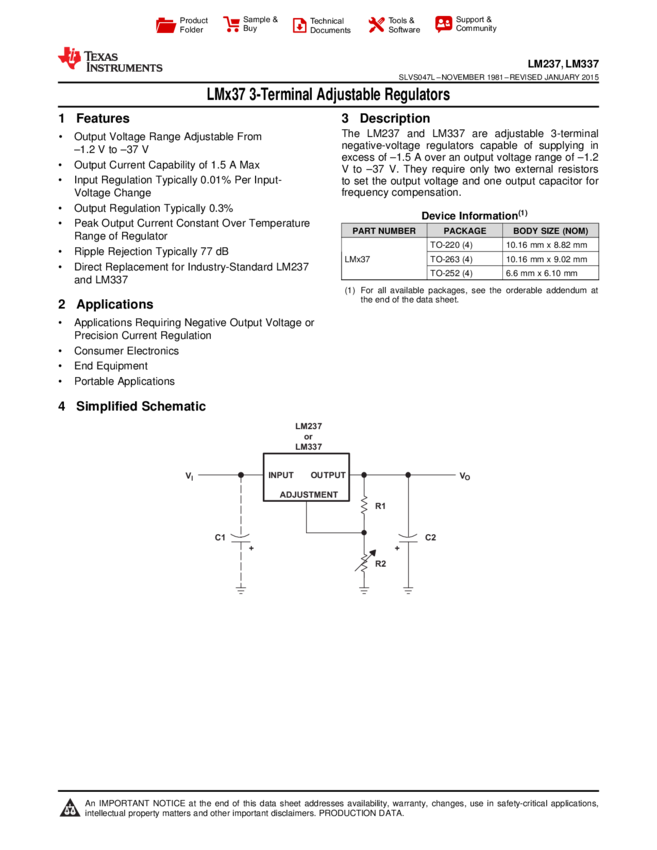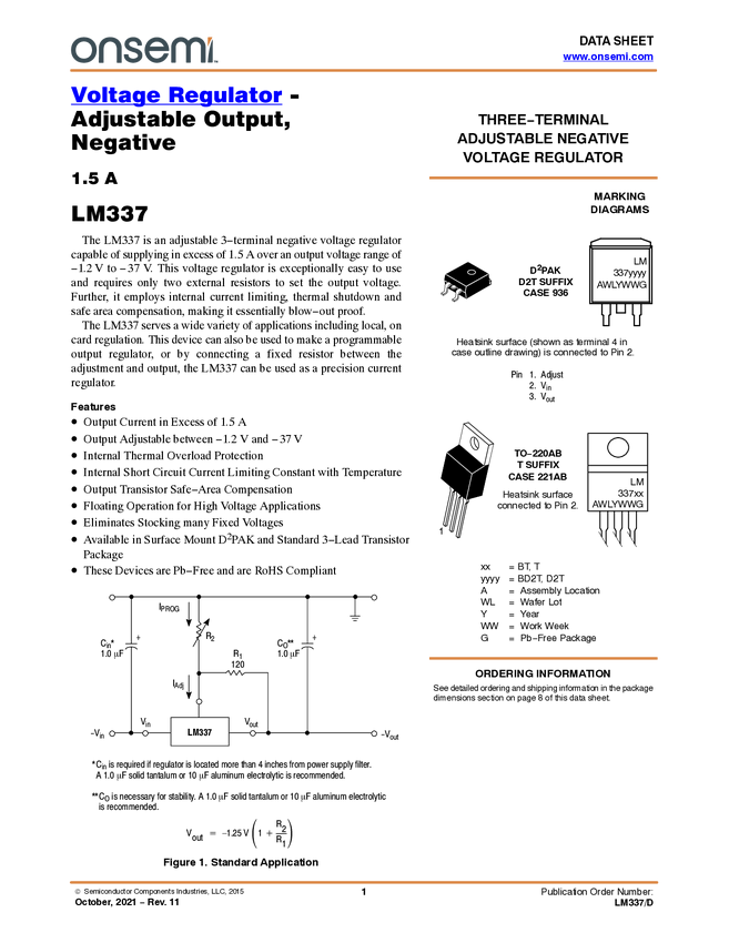 LDO Regulator Neg -1.2V to -37V 1.5A 4-Pin(3+Tab) TO-263 T/R