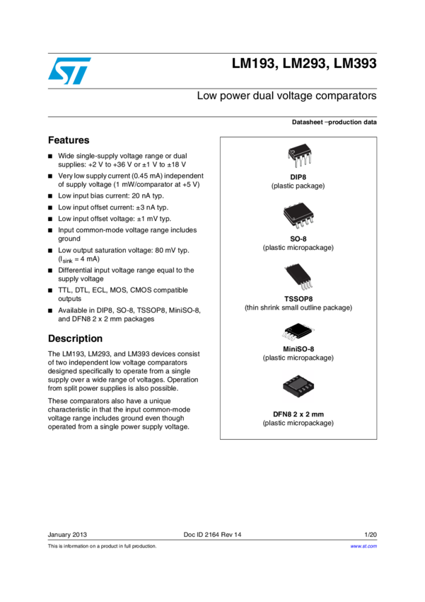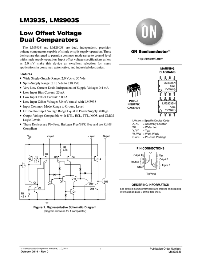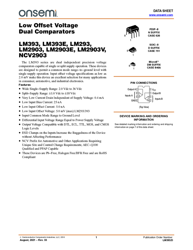 Układ scalony; LM393DR2G; komparator; uniwersalny; 2-36V DC; 5mV; 1300ns; 2 komparator; SO8; SMD; = XL393, HA17393, ON Semiconductor; RoHS; opakowanie/100szt