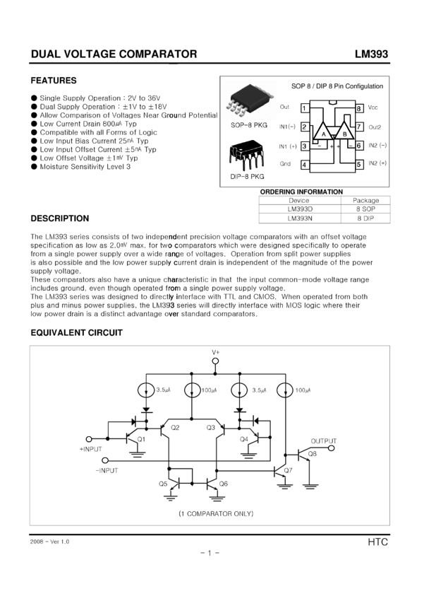 Układ scalony; LM393N; wzmacniacz operacyjny; komparator; 1400ns; 2-32V DC; 5mV; 2 kanały; DIP8; THT; l=50szt.; = HA17393; SUM; RoHS
