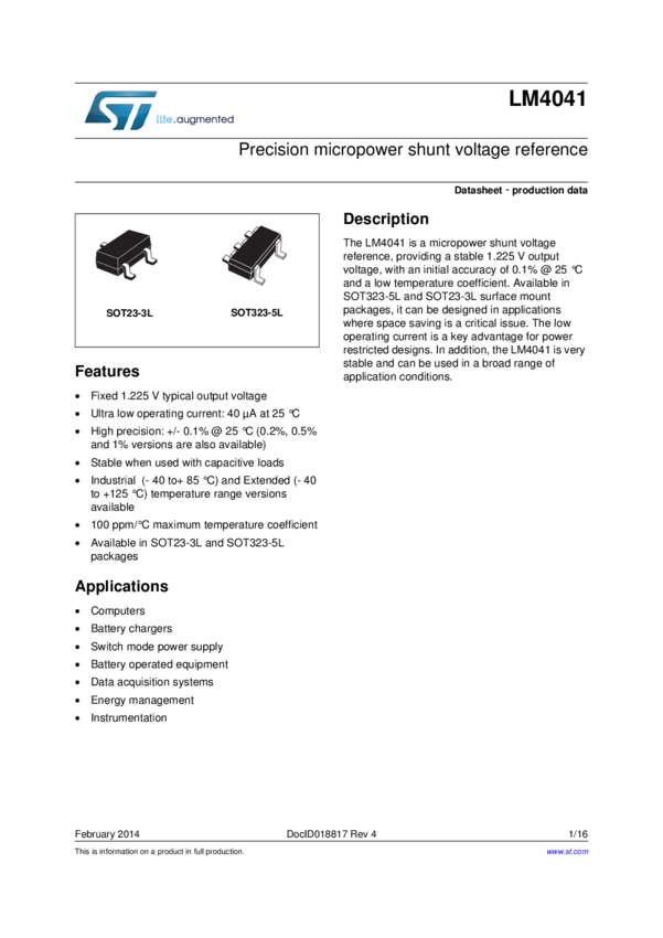 LM4040/4041 - Precision Micropower Shunt Voltage Reference (11/05/2015)